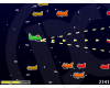 When a spaceship is destroyed, one of the 6 different bonuses may appear : improved speed, increased firepower or firerate, armor bonus, 100/250 points or maybe the ultimate über-powerful bonus.